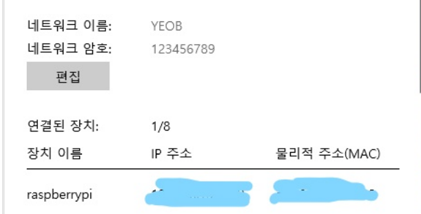 위와 같이 연결된 장치에 라즈베리파이가 보이고, 라즈베리파이의 IP주소를 구할 수 있게됩니다!