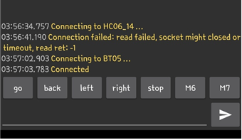 그러면 버튼을 누를때마다 go, back과 같은 데이터값을 보내주어 조이스틱같이 조종할 수 있습니다.