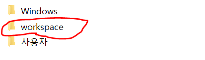 그래서 저는 C드라이브에 바로 workspace라는 폴더를 만들어서 진행했습니다.