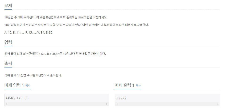 요약하자면, 10진법 수 N을 B진법으로 바꾸는 문제이다.
