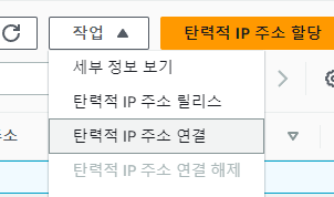 이후 탄력적 IP 주소 연결을 통해, 방금 만든 인스턴스를 연결해줍니다.