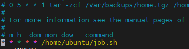 echo "* * * * * /home/ubuntu/job.sh" 1>>crontab_new