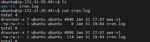 cron.log을 살펴보면 분마다 "ls -l"을 실행해서 저장하고 있는 것을 확인해볼 수 있습니다.