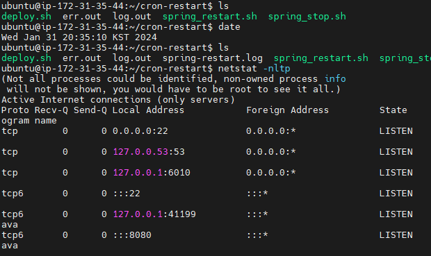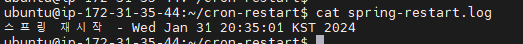 echo "스프링 재시작 - $(date)" 1>>/home/ubuntu/cron-restart/spring-restart.log
