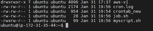 job.sh파일에서는 "ls -l"이라는 명령어를 cron.log에 담는 작업을 하도록 해줍니다.