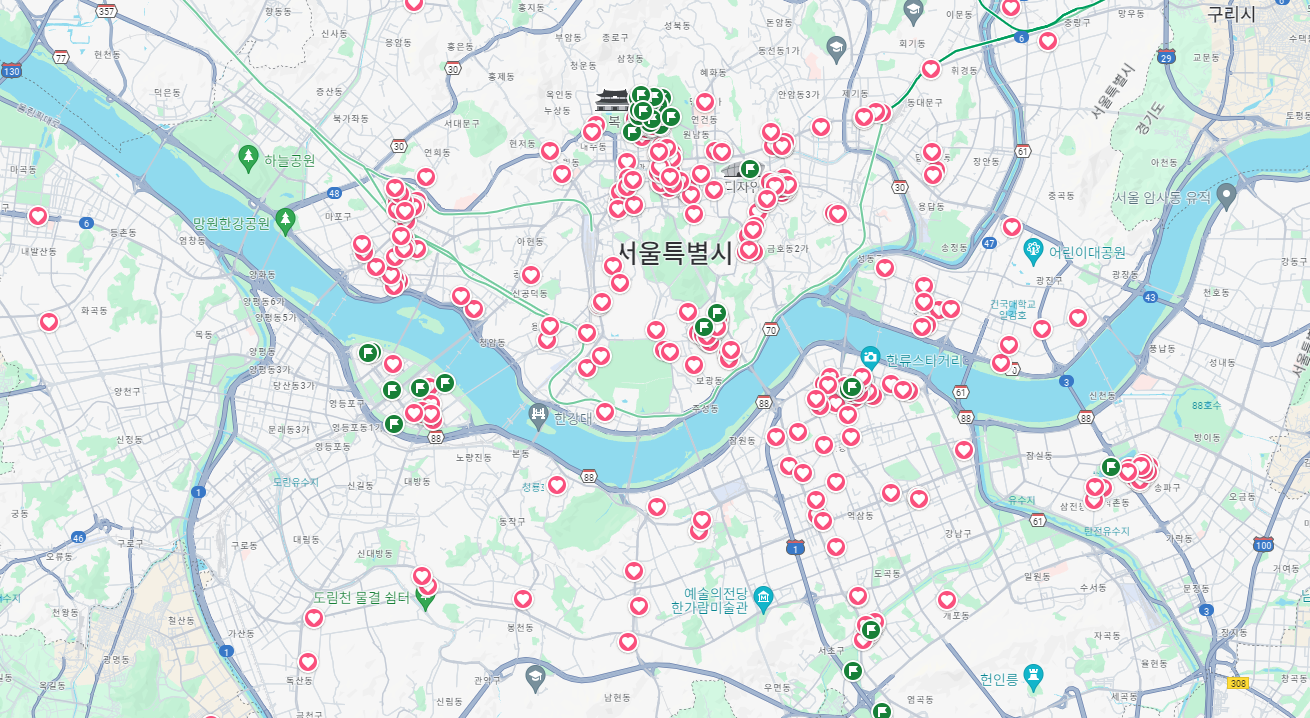 어떻게든 chatgpt나 구글 api를 활용해서 자동화해보려고 했는데, 가게마다 기준도 다르고 뭔가 엄청 귀찮아져서 2주만에 포기하고, 그냥 수동으로 적는 중입니다. 뭔가 지도가 채워지는 느낌이 재밌네요.